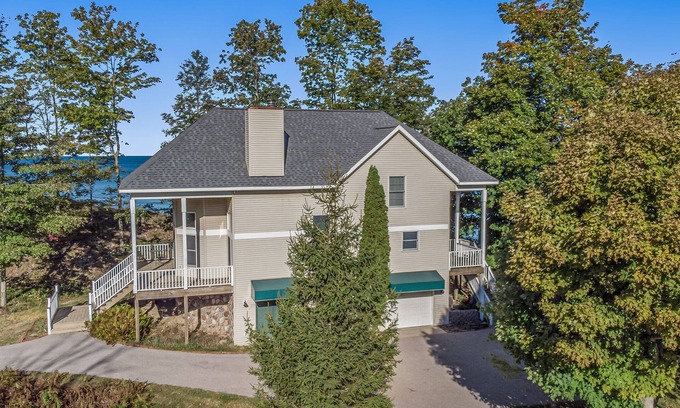 This new, modern home has been updated and turned into the perfect vacation rental. From the moment you walk in, you will love the modern touchs in this beautiful Northern Michigan home. Relax and enjoy your private sandy frontage and breathtaking sunsets!