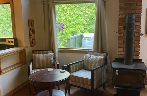 Beautiful getaway location. This cottage is inviting and cozy in all seasons. The place is tucked away with a large deck that backs onto the forest. Inside the living space has an oak dining table that seats six for entertaining meals.