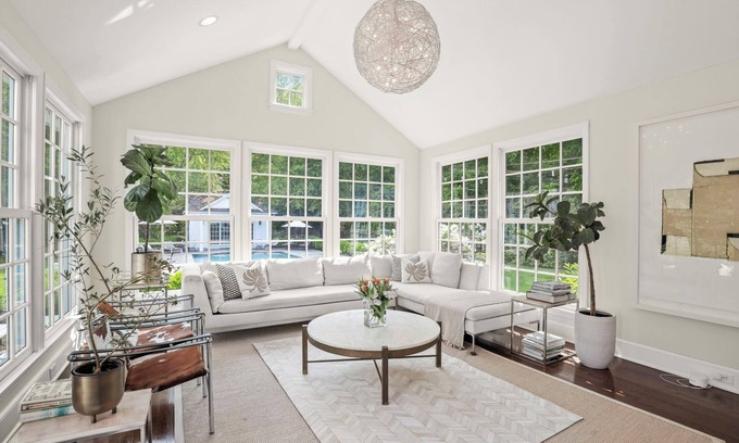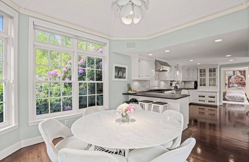 A private oasis for fine living, this pristine antique farmhouse is on over an acre of breathtaking property featuring magnificent perennial gardens, stone terraces, rolling lawns, an inviting pool and pool house. Completely renovated and expanded in 2009, you will find the the charm and character of an old house with mid-century modern furniture and state-of-the-art amenities. The living room, library and dining room flow seamlessly together providing a perfect setting for a family gathering still giving everyone lots of privacy. The gorgeous sun filled gourmet kitchen, breakfast room and family room anchor the main floor of the home and handle the hub of activity effortlessly.
