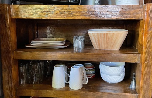 The Casita is a bright, open space with high ceilings and ceiling fans allowing for optimal air flow. The split system A/C cools the entire space in a matter of minutes. The window and French doors allow for lots of natural light but have room darkening curtains for a good night’s sleep. All fixtures are brand new.