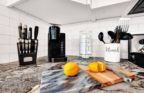 "Separate kitchen pantry Stocked with all cooking essentials such as george Forman grill,, toaster, blender, bread maker, teapot, etc.