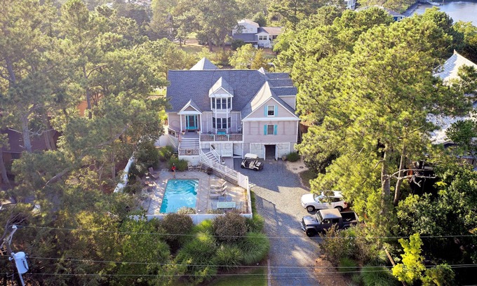 REDUCED FOR QUICK RENTAL! ONLY A FEW WEEKS LEFT IN 2023... This waterfront North Shores home is THE perfect home for your family vacation! Sleeping 15 with 6 BR and 5.5 BA, with decks and a screened porch, there is ample room for all to comfortably enjoy a beach vacation. There is a private, salt-water pool, waterfront backyard and dock to tie up your boat or to crab and fish off of. There are 3 kayaks, (w/life vests,) for guest use in the canal. The owner even provides a golf cart to tool around the neighborhood with. And what a neighborhood it is... offering a spacious community pool, tennis courts and access to it's very own private beach on the Atlantic. There are 3 separate "suites" including the totally private "Cabana Suite" on the ground floor; the beds range from King bed and Bunks for the kids. The owners pride themselves on the many amenities offered to guests.... Numerous cable and Smart TVs to stream your favorite programs, beach chairs, beach wagon and toys, pickleball equipment, 3 full size refrigerators, gas grill, blenders, panini-makers, numerous ways to make coffee and much more! No Pets. No smoking. Sheets and towels are not included, but are available for rent. Guests pay a $100 per week Amenity Fee for rentals between May 26, 2024 and September 2, 2024. No more than 3 un-related parties permitted in home. Guests pay a $400 cleaning fee with every stay. Guests must choose to purchase a $70 Vacation Rental Damage Insurance policy covering $3,000.00 in accidental damage, or pay a refundable security deposit of $2,000.00. Policies of a lesser amount are not acceptable. This amount will not be reflected in the quote amount on VRBO. Guests sign an addendum for use of pool, kayaks, golf cart, grill.