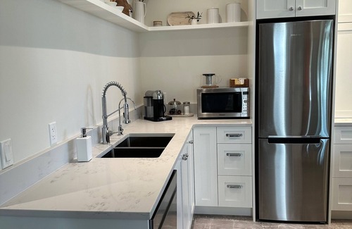Located in Maple Bay within walking distance of the beach, tennis/pickleball courts, and local pub. You will sleep restfully in the king-size bed with down bedding; there is a second bedroom with two twin beds for those travelling with family or friends, and a pull out foam floor mattress for a fifth guest. Both rooms have light-filtering privacy blinds and black out curtains.