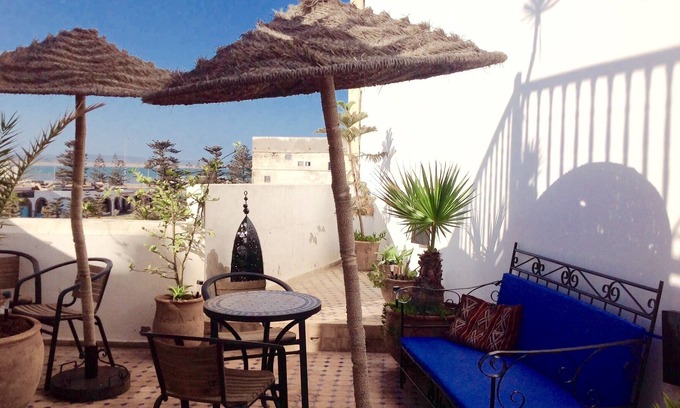 The Riad has a sunny terrace with panoramic views of the sea and a shaded courtyard where you can relax and enjoy tea and cold drinks.