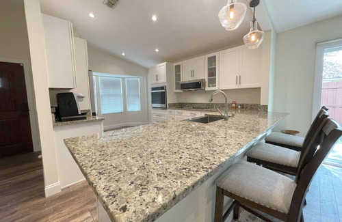 The home has easy access with a comfortable stylish space. The bedroom comes with a queen bed. The living room has a pull-out sofa bed if needed for a third or fourth guest. The kitchen is equipped with many extras such as a commercial Keurig machine, Ninja blender and ice maker. The bathroom contains a Jacuzzi tub with powerful jets for those long days. The home is equipped with an interior washer and dryer with provided detergent. The garage is used for storage and will be inaccessible to guests.