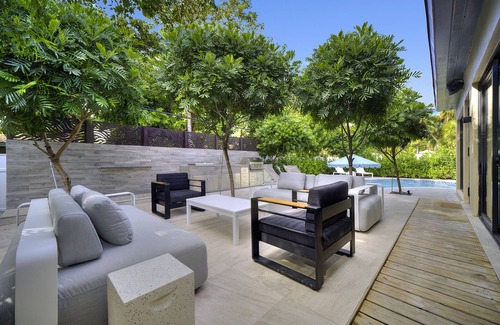 Our open concept indoor/outdoor living space will give you the tropical oasis you were looking for with the modern cozy touches of being home. The fully equipped kitchen flows directly outside to the saltwater pool and outdoor cooking space with plenty of room for entertainment whether you are enjoying a glass of wine at night with the Sonos speaker system or lounging by the pool during the day. The pool also offers 4 built in stools that act as a swim up bar.