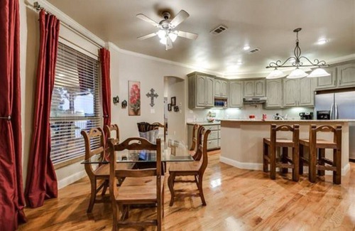 The home is located 67 miles from DFW airport, 74 miles from Texas Ranger and Dallas Cowboy stadiums, 47 miles from Texas Motor Speedway, 64 miles from the Fort Worth Zoo, 59 miles from the Ft. Worth Stockyards, and 74 miles from Winstar World Casino.