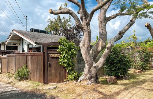 Separated from the Main House by a front yard with Plumeria and Rainbow Eucalyptus Trees, Hibiscus Bush and your designated parking pad. The cottage is fully furnished including a Cal King bedroom, living room with a queen size sofa bed, private tropical garden patio with outdoor seating and Weber gas grill, complete kitchen, dining area, Japanese style “furo” shower/bath (note: these bath are spacious, but have difficult entry/exit and have hard tile corners inside and out and may not be suitable for all people), smart TV, cable, Wi-Fi, three celling fans, and central air conditioning. On the back of the house is located a laundry room with washer and dryer, beach chairs, umbrella, boogie boards and beach towels.