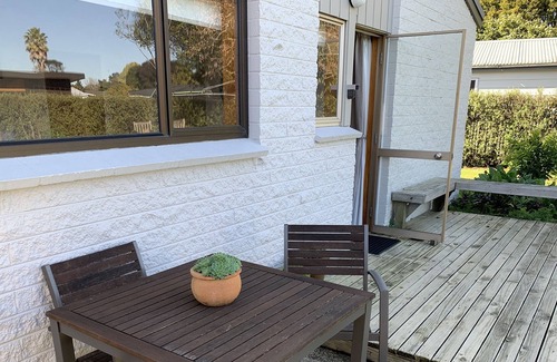 Located close to town, local parks, cycle tracks, trails and cafe. Studio unit is self-contained, separate entrance, off road parking, self check in, kitchenette, laundry, shower and separate toilet. Deck overlooks the vegetable garden. The unit - garden are private and quiet. Secure storage for bikes. Unit has queen bed and heat pump/air-con. Tea/coffee/milk, light breakfast foods provided.