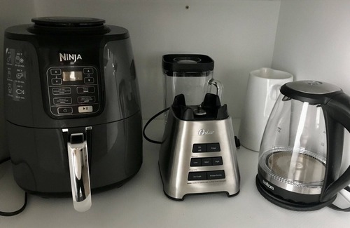 - Keurig K-Cup machine, electric kettle, and water filter to start your day right.