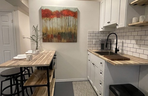 Upon arrival we'll ask you to park on the far side of the second driveway leaving enough room for our vehicle to get out of the garage. You'll enter through the gate and down the covered concrete stairs to your suite. The keypad code will be given on check-in day. Ski storage is outside at the bottom of the stairs, please no ski's or snowboards in the unit. Wifi password is on the fridge, there is a Roku Tv so you can use all your home streaming services and it will automatically log you out on check out. If there is anything you require during your stay please don't hesitate to contact us!