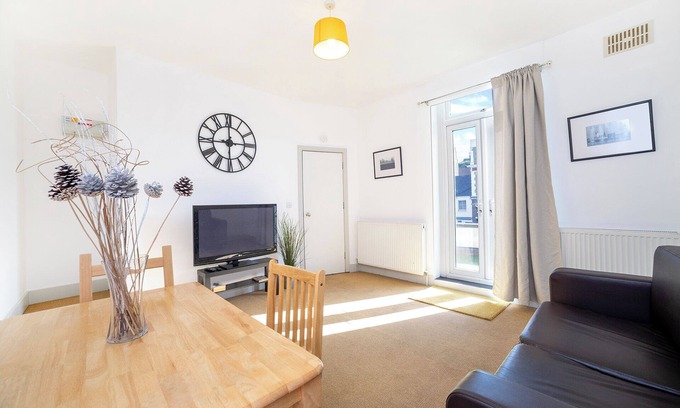 "Sizeable one-bedroom apartment near Olympia Exhibition Centre, Westfield Shopping Centre, and Hammersmith Station. The apartment has been recently redecorated and benefits from lots of natural light. It includes a fully equipped kitchen, a full bathroom, a sofa bed in the living room, a dining table, a smart TV, free Wi-Fi, fresh linen and towels, and toiletries. It is close to museums, tourist attractions, and has easy access to public transportation."