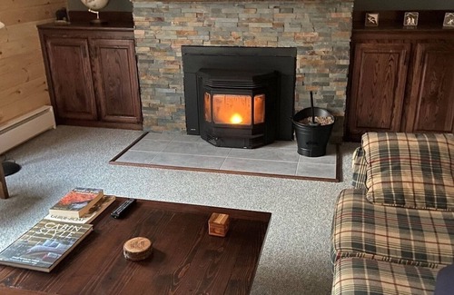 Unit 50G- The ultimate Adirondack experience! This unit has been extensively renovated with all new upstairs carpeting, tongue and groove pine walls, and all new bedding, drapes, and kitchenware. The bathrooms have new tiles and marble topped vanities with oil rubbed bronze fixtures. 50G features a pellet stove that provides real wood flames and cozy warmth at the flick of a switch! This unit is in a quiet woodsy location just a short walk to the swimming pool.