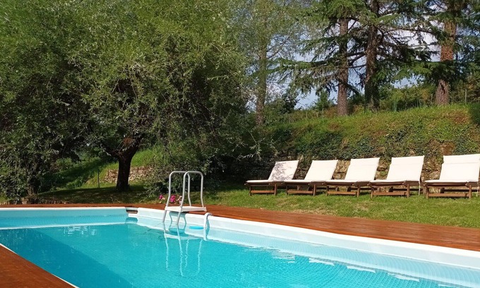 Large vacation villa with a private pool in the heart of Chianti, the area famous all over the world for its wine and food.