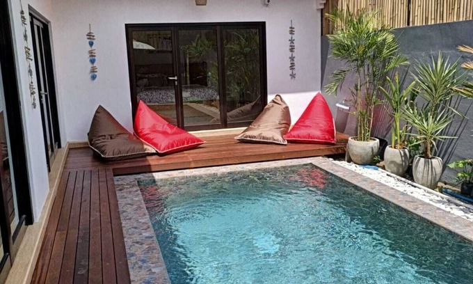 Private Villa in great location 400m from nearest beach and within easy reach of popular spots such as Cafe Del Mar, Finn's beach club, Mari beach Club and Folie restaurant. Villa features 2 bedrooms and 2 bathrooms with a private pool and yard down a quiet laneway. Fully air conditioned and with all home comforts. Free wifi available for guests. Great place to relax and chill out with a short drive to many local bars and restaurants in popular tourist area of Canggu. Local amenities; supermarket, medical centre and coffee shop within easy walking distance.