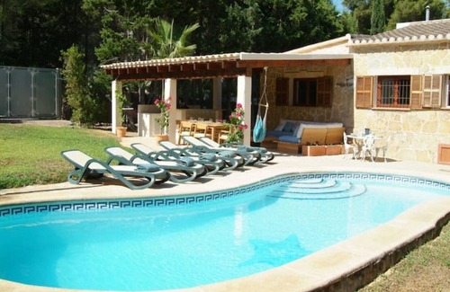 Traditional Mallorcan stone villa among ancient olive trees combining rustic feel with excellent location in heart of small village of Bonaire. A choice of restaurants, mini market & two beautiful beaches a short walk away. Veranda at front of house offers seating & dining area with views of marina, sea & mountains. Pool terrace includes relaxing seating, another dining area and BBQ. Great restaurant and Ibiza-style chill-out bar next door with ambient DJ in high season til 10.30. Two delightful beaches 8-10 minutes walk around one side of the marina, or head the other way and you can swim off the rocks 2-3 mins walk away. Nearby Alcudia offers a stunning walled medieval city full of bars and restaurants and late night shopping, and the Port of Alcudia offers more tourist options and a 12km sandy beach. Facilities include fast fibre wi-fi, portable JBL music speaker, TV, Table tennis, washer / drier etc.