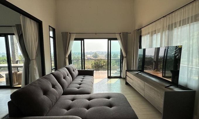 Private villa with spacious balcony and outdoor terrace .Total private area 2 Rai (0.8 Acres) useable area up to 130 sqm. With a large living room facing to a stunning view of mountain of " Choui Fong " tea plantation . Plus patio and dedicated dining area or barbecue .With only 10-15 minutes to local market and convenience store (7-11) by car and easy access to Doi Tung , a mountain in the Thai highlands . 40 minutes to Chaing Rai international airport . only 30 Minutes to Mae Sai