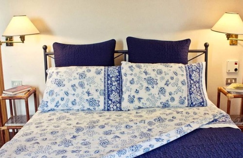 A private outdoor staircase (near the entrance) leads to the apartment which is located on the first floor of the west wing of the house. Here, you will find a living room (with fireplace), a kitchen/dining area (with fridge, oven, gas range, washing machine) and two double/twin bedrooms (with divisible beds and ceiling fans). Both bedrooms have ensuite bathrooms (one with bath and shower, one with shower).