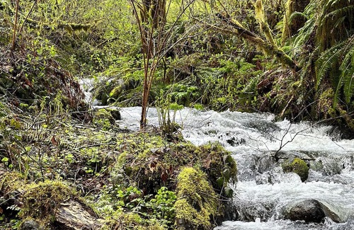 Private waterfall, 3 acres of forest, 400ft of Wilson River, with music & coffee | Cabin in Tillamook