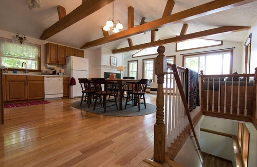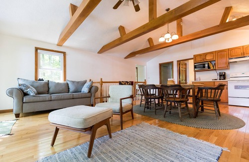 With 2 queen beds, this cottage is very comfortable for 4. A sofa bed adds a bed for 1-2 more in the common space.There is also a common space downstairs with a futon to relax, sleep or read.
