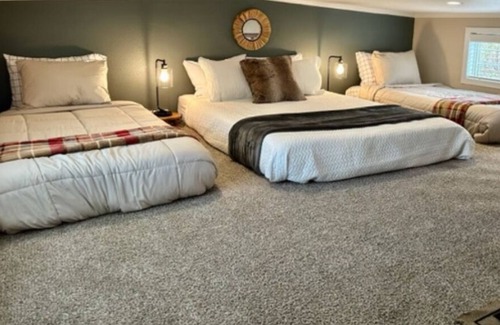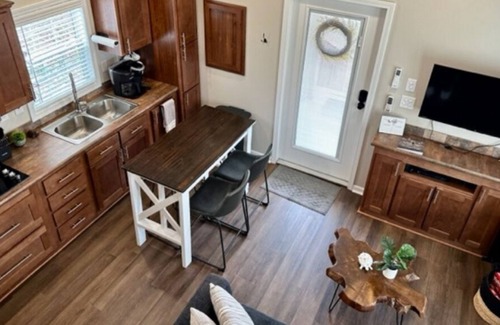 INSIDE: WIFI is available and dependable, internet enabled TVs are located in every living space, stackable washer & dryer. There is one main bedroom with a queen bed and dedicated office desk for remote work. The upstairs loft with actual staircase (no ladder) has 1 queen bed and 2 twin beds. *ALL NEW MATTRESSES* The kitchen includes electric stove, convection oven microwave, full size refrigerator/freezer that has filtered water & ice. Heating & cooling is provided by a mini split system with two vents (one in the main bedroom and the other in the living area)....it'll keep you cozy warm in the winter and cool in the summer.