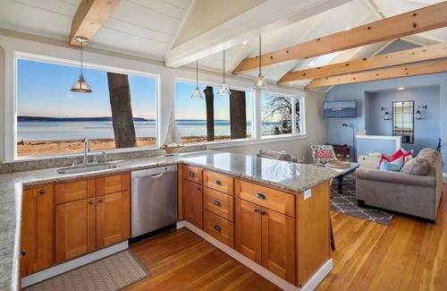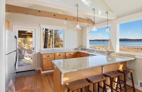 Enjoy breathtaking views of Puget Sound, Mount Rainier, the Seattle skyline and the North Cascades from this cozy, two-story beach cabin.