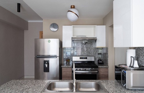The apartment is designed for tranquility, boasting a quiet atmosphere that contrasts the vibrant energy of Santo Domingo. The sleek, modern decor creates a comfortable living space, while the bedroom provides a restful night's sleep. The fully equipped kitchen allows you to whip up your favorite meals, or you can explore the local dining scene just steps away. Take advantage of the convenient location, with universities, cultural attractions, and entertainment options nearby. Whether you're here for business or leisure, this apartment is your ideal home base.