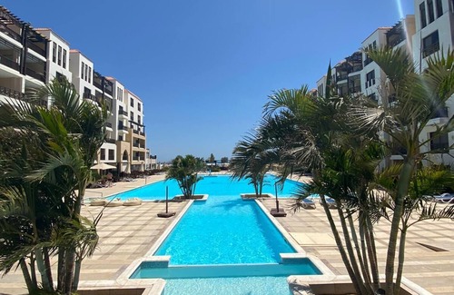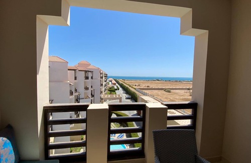 Das Studio ist im 6. Stock des Samra Bay Resorts, mit wunderschöner, bewohnbarer Terasse mit Meerblick und liegt am Privatstrand, auch verschiedene Pools, davon einer beheizt, sowie Aquapark und SPA..