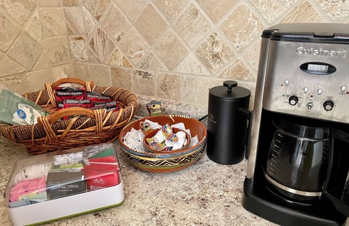 Bask in the heated, saltwater pool year round. Butterflies and birds will flutter around the garden oasis as you watch the breath-taking sunrise while sipping your morning coffee at the outdoor, pool-side table.