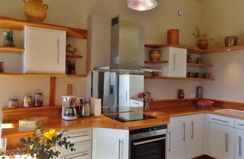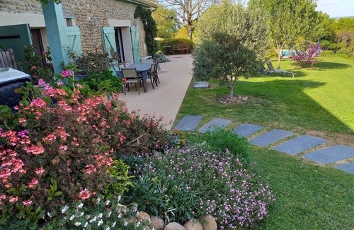 The south-facing terrace overlooks the garden where several spaces are provided for your relaxation (hammock, garden furniture, deckchairs, etc ...).