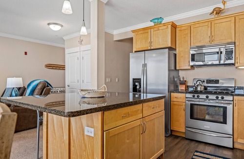 A fully equipped kitchen with stainless steel appliances allows vacationers to prepare their own cuisine which can be enjoyed at the oceanfront dining room table. When your meal is complete, unwind on the couch or recliner next to the river rock gas fireplace and enjoy a movie on the Smart television.
