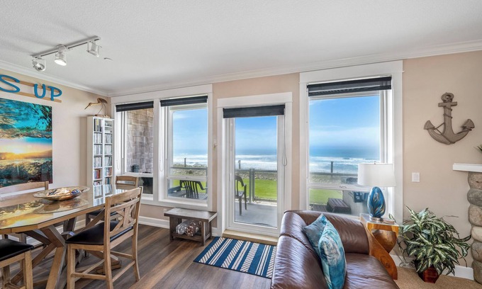 Surf's Up is an aptly named vacation home that offers guests an opportunity to escape the routines of life and enjoy spectacular oceanfront views of the Pacific Ocean from both the condo and a private hot tub.