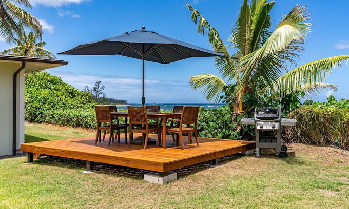 * Outdoor Living Spaces: Enjoy al fresco dining on the expansive deck, complete with a BBQ grill, shaded seating, and direct ocean views, perfect for gatherings with loved ones.