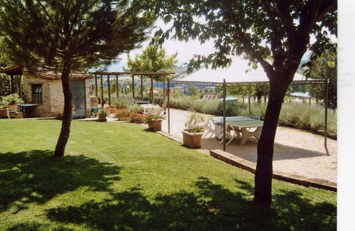 The large park surrounding the swimming pools extends for about 2 hectares, in a gentle hilly position. It has large relaxation areas, for resting and reading, very well cared for. There is a very well equipped barbecue and oven area with a large veranda and gazebos where you can eat outside. For a holiday in Umbria dedicated to sport and fun: ping pong table, five-a-side football pitch in natural grass, volleyball court in natural grass, badminton, jogging path of about 1 km along the property's border, fenced. It also has a private car park with a roof (one parking space per apartment).