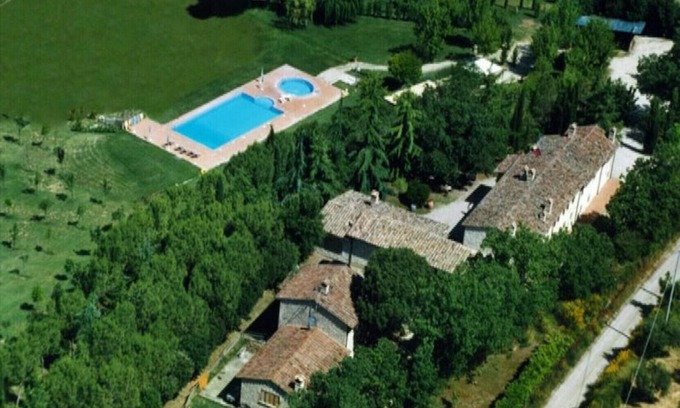 At 1km from the medieval village of Corciano, 5 from Perugia, in an ancient farmhouse renovated in fully furnished apartments, the residence is surrounded by greenery with a 2ha park available, swimming pools, 1km running path, gazebo, barbecue, chairs , tables, umbrellas and deck chairs; a soccer field and a volleyball court, botanical park and garden; large playground for children.