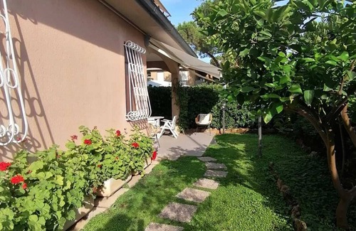 Finemente arredato e dotato nel patio di tavolo tondo e 4 sedie da giardino per mangiare anche all aperto (Seconda doccia nel giardino)
