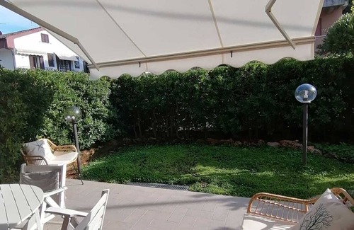 Appartamento a Pratoranieri, situato al piano terra con giardino e a soli 30 mt dal mare situato al piano terra ( ristrutturato da marzo 2019 ) composto da salotto con divano letto 'tavolo con 4 sedie , ampia libreria , cucina a vista, 2 camere doppie ,bagno con doccia .