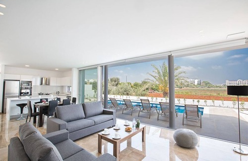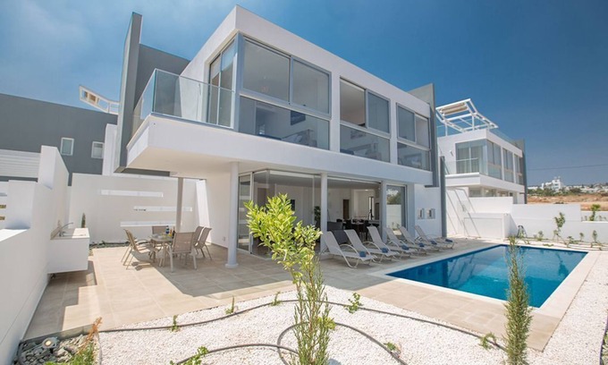 This stunning and luxurious villa is located in the popular resort area of Protaras and is just a 5 minute walk to the beach and to a vast selection of bars, restaurants and shops. The villa is newly built and fully equipped with brand new furniture and fittings to ensure a comfortable and perfect self-catering stay.