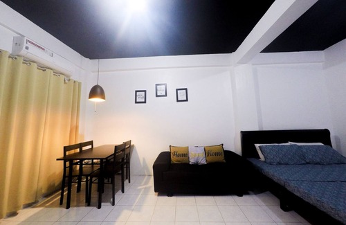 A secured and homey studio type unit is located at the 1st level of the apartment building. The main gate uses an RFID system and CCTV cameras for security purposes. You can enjoy all of its amenities such as air conditioning, dining/living area, cable TV, WiFi, a kitchenette w/ fridge, cooking appliances & a king-size bed. There is also an en-suite with a hot/cold shower for your convenience.