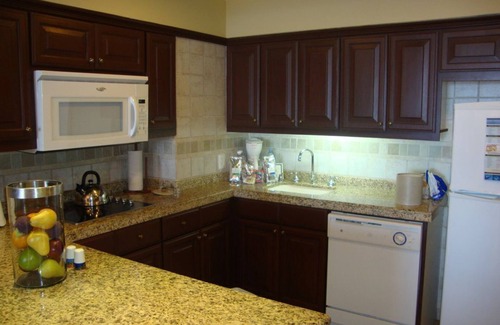 Full Kitchen (cook top, no oven) Refrigerator/freezer, microwave and all cookware, Spacious Dining/Living room with comfortable sleeper sofa.