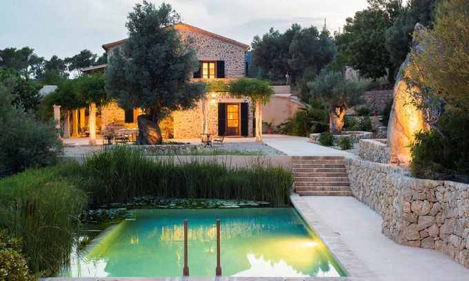 Within a spectacular and privileged area and mountain surroundings, this beautiful country house with private pool on the outskirts of Andratx welcomes 8 guests.