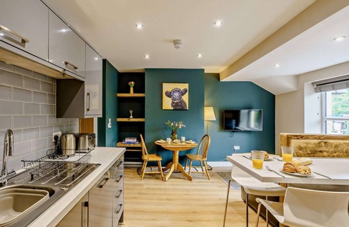 The kitchen is fully equipped with new appliances including a coffee machine, washing machine, and dishwasher, an induction hob allowing you to enjoy all the comforts of home. Located in the heart of the village, you'll be within easy reach of local shops, restaurants, and cafes. Additionally, there are plenty of walks to be had on the surrounding moorland, providing you with the opportunity to enjoy the stunning natural beauty of the area. Whether you're looking for a romantic getaway, a family vacation, or a relaxing break with friends, our ap