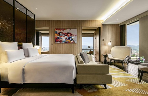 Pullman Bandung Grand Central offers 279 air-conditioned accommodations with minibars and safes. Beds feature premium bedding. A pillow menu is available. 55-inch Smart televisions come with premium cable channels. Bathrooms include showers with rainfall showerheads, bathrobes, slippers, and complimentary toiletries.