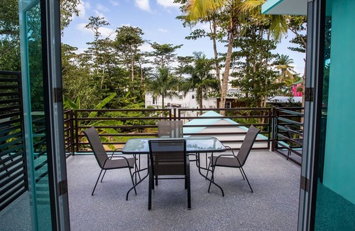 The Pulpo Loco Loft is a stylish, modern open floor plan apartment located on the second floor of The Beach Pad. Enjoy the private balcony where you can hear the ocean, have coffee and see if the surf is up while sitting at your outdoor cafe table. Birds will serenade you in the morning and coquis will greet you every night!
