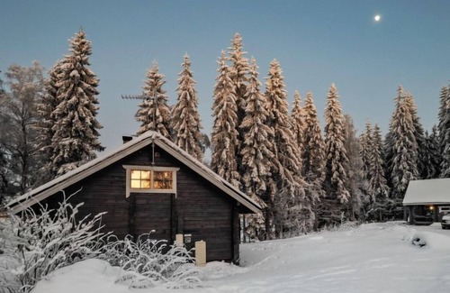 Log cabin 2006, living room / kitchen with sofa bed, 2 bedrooms with 2 beds in each (one downstairs, another upstairs), sleeping loft with 4 beds, wood-heated sauna, washroom, toilet downstairs and upstairs, covered porch.