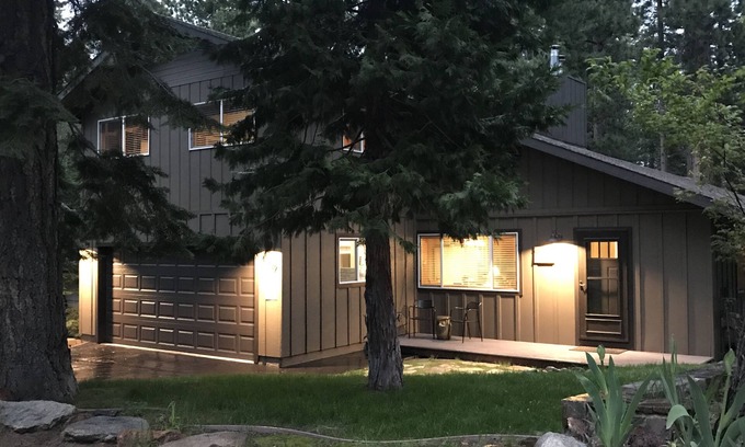 This house, Towering Pines Lodge is a bright, sunny home in the popular Gardner Mountain/Camp Richardson Area. Only 6 miles from the Stateline casinos and Heavenly Ski Resort. Spend your next vacation in our 4 bedroom/3 bathroom, super cozy and fully stocked house. The house has been renovated and has way too many amenities to list: modern mountain decor, hardwood floors, carpet in bedrooms, tiled and upgraded bathrooms, Fine Art thought the house, updated furniture, fresh linens & towels, a Private Hot Tub(new 11-2023), fenced back yard and Free WiFi.