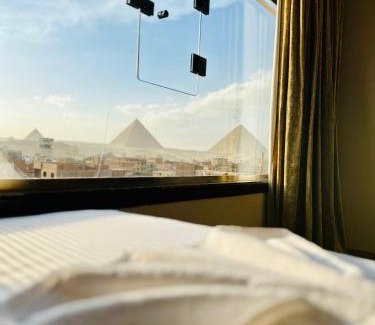 Featuring a terrace, Pyramids Heart Hotel offers rooms in Cairo, a 18-minute walk from Great Sphinx and 1.6 miles from Giza Pyramids. With a shared lounge, the 3-star hotel has air-conditioned rooms with free WiFi, each with a private bathroom. The property provides room service, a concierge service and currency exchange for guests. All guest rooms are equipped with a flat-screen TV with satellite channels, fridge, an electric tea pot, a bidet, free toiletries and a closet. All rooms will provide guests with a minibar. The breakfast offers continental, American or vegetarian options. At the hotel you'll find a restaurant serving Middle Eastern cuisine. Vegetarian and halal options can also be requested. Speaking Arabic, German, English and Spanish at the reception, staff are ready to help around the clock. Cairo Tower is 9.4 miles from Pyramids Heart Hotel, while Tahrir Square is 10 miles from the property. Cairo International Airport is 20 miles away, and the property offers a paid airport shuttle service.