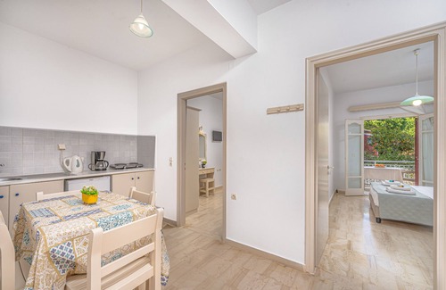 These well-equipped Apartments offer the perfect opportunity for guests to escape from everyday life and just relax. Enjoy a drink on the balcony while admiring the view, sunbathe on the beach just 50 meters from the accommodation, dare to try some water sports or take a walk to the nearby center for shopping and a delicious meal at one of the traditional tavernas.