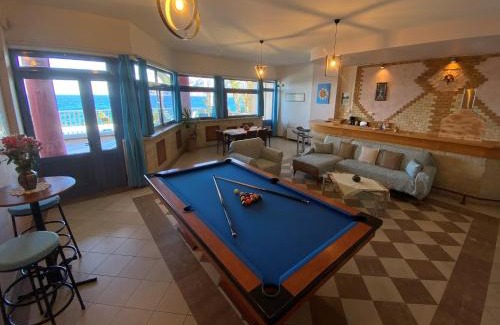 BathroomShower, Towels, Hairdryer, Toilet paper, Body soap, Toilet, Private bathroom, Walk-in showerMedia & TechnologyFlat-screen TV, TV, Satellite channelsGeneralHeating, Air conditioning, Fire extinguisher, Ironing facilities, Iron, Private entrance, Fan, Tile/Marble floorOutdoorsOutdoor dining area, Patio, Terrace, Outdoor furniture, Balcony, Private poolKitchenElectric kettle, Toaster, Kitchen, High chair, Washing machine, Dining table, Coffee machine, Kitchenware, Wine glasses, Dishwasher, Oven, Refrigerator, StovetopLiving AreaSitting area, Dining area, Desk, SofaViewLandmark view, Pool view, Sea view, ViewBedroomChildrens' cribs, Linens, Wardrobe or closetAccessibilityUpper floors accessible by stairs onlyBuilding CharacteristicsPrivate apartment in buildingRoom AmenitiesDrying rack for clothing, Non-feather pillow, Clothes rack, Socket near the bedPool and SpaPool towels, Pool with a viewPhysical distancingSingle-room AC for guest accommodationCleanliness & disinfectionHand sanitizer |