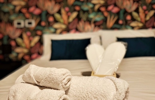 While you're here, you can enjoy all the comforts of home and more, including a bidet and air conditioning, as well as towels and bed sheets. Other amenities include soap, toilet paper, and a hair dryer.